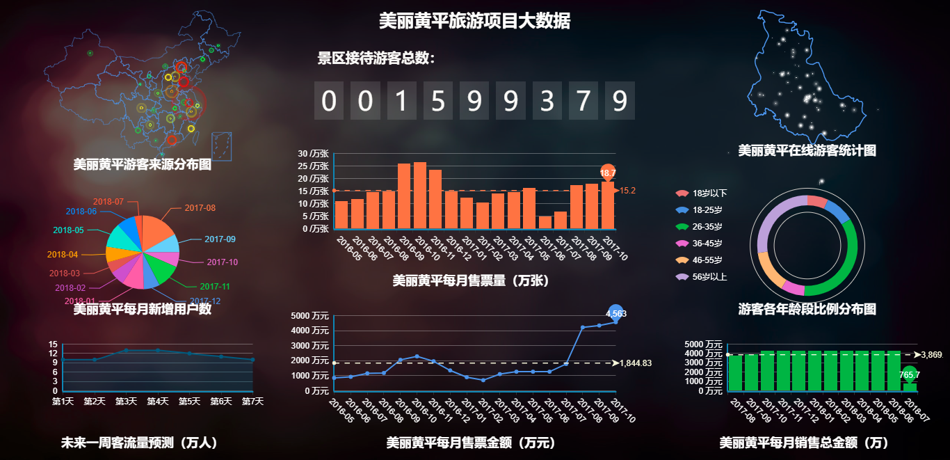 利来国际始终立足于景区的整体设计与规划,追求“智慧化”,不盲目推崇科技感,坚持以项目的落地可行为建设目标。曾与贵州省黄平县展开合作,立足当地实践,为其量身打造大数据平台,涵盖行、食、住、游、娱、购六大方面,满足了相关政府部门有助于旅游产业和旅游信息化的行政办公需求。